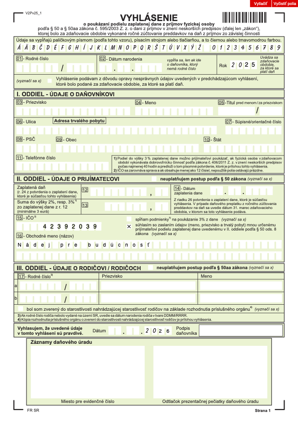 Za Vašu podporu v mene všetkých, komu našou prácou pomôžeme, vopred ĎAKUJEME.